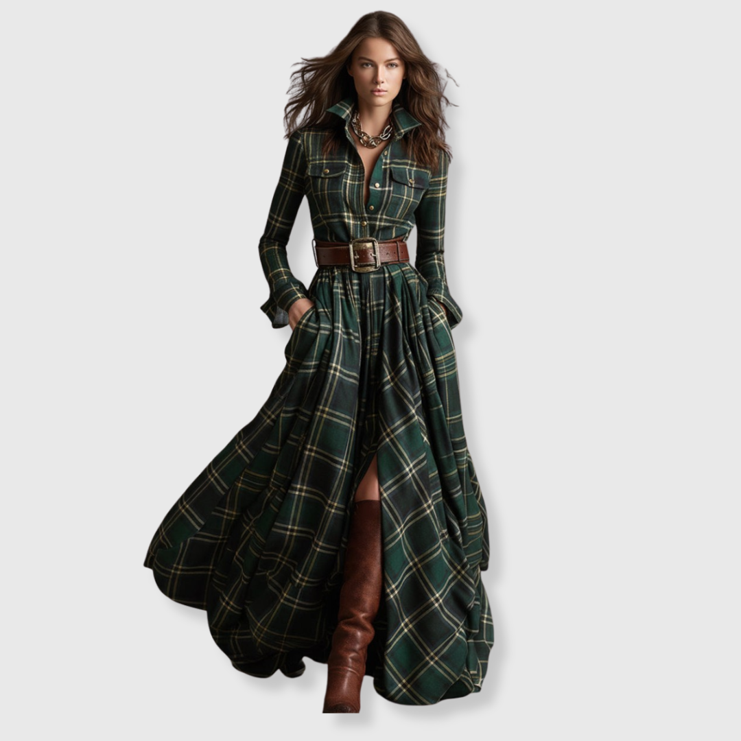 Scarlett | Abito camicia con cintura è pensato per donne che uniscono l’eleganza classica a un tocco moderno. Questo splendido abito sagomato scivola con naturalezza a ogni passo e combina il fascino dei quadretti vintage con una silhouette femminile che valorizza la figura, offre libertà di movimento e trasmette sicurezza.