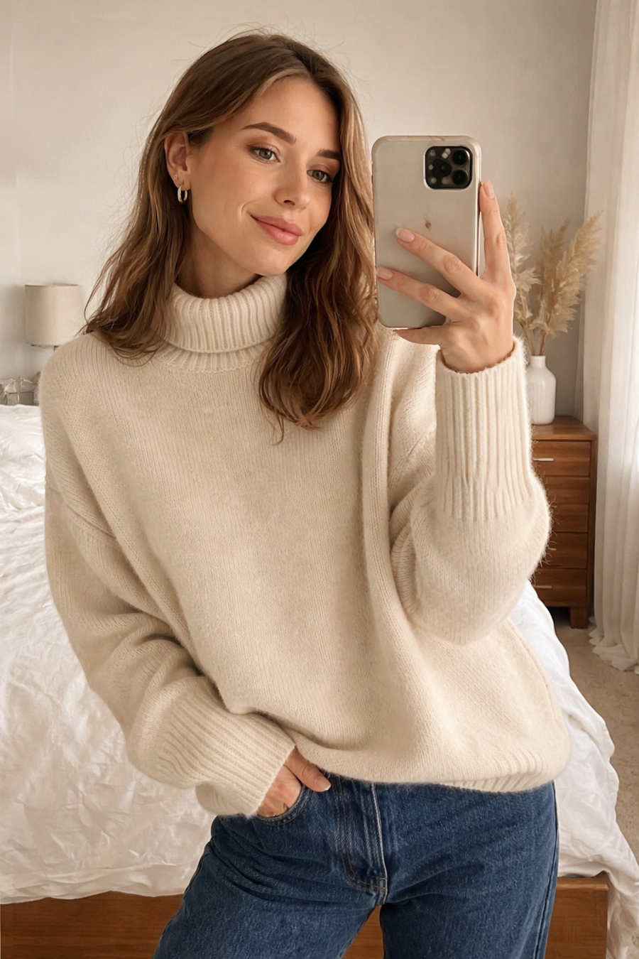 Maglione davvero comodo e caldo senza essere pesante. La vestibilità è morbida e il colore è ancora più bello dal vivo. Perfetto sia con jeans che con pantaloni eleganti.